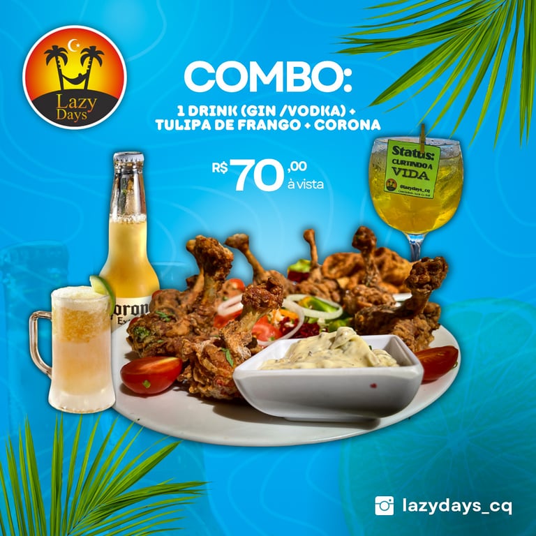 Venha desfrutar de um passeio relaxante no Combo 1 - Lazy Days em Barraca Lazy Days, localizada em Canoa Quebrada. Neste pacote, você poderá desfrutar de uma deliciosa combinação de cerveja gelada e petiscos saborosos, tudo isso enquanto aproveita as belas paisagens da região.