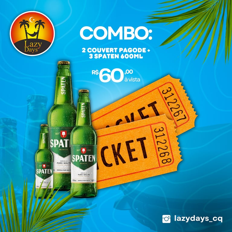 Venha desfrutar de um passeio relaxante no Combo 1 - Lazy Days em Barraca Lazy Days, localizada em Canoa Quebrada. Neste pacote, você poderá desfrutar de uma deliciosa combinação de cerveja gelada e petiscos saborosos, tudo isso enquanto aproveita as belas paisagens da região.